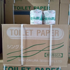 1個1個のトイレットペーパーが紙で包装されている商品です。1箱に60個(ロール)入っています。